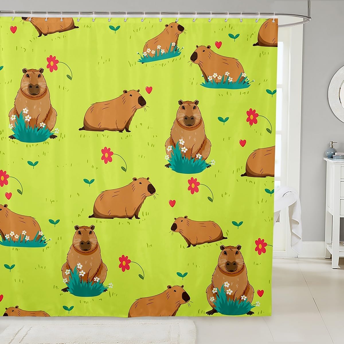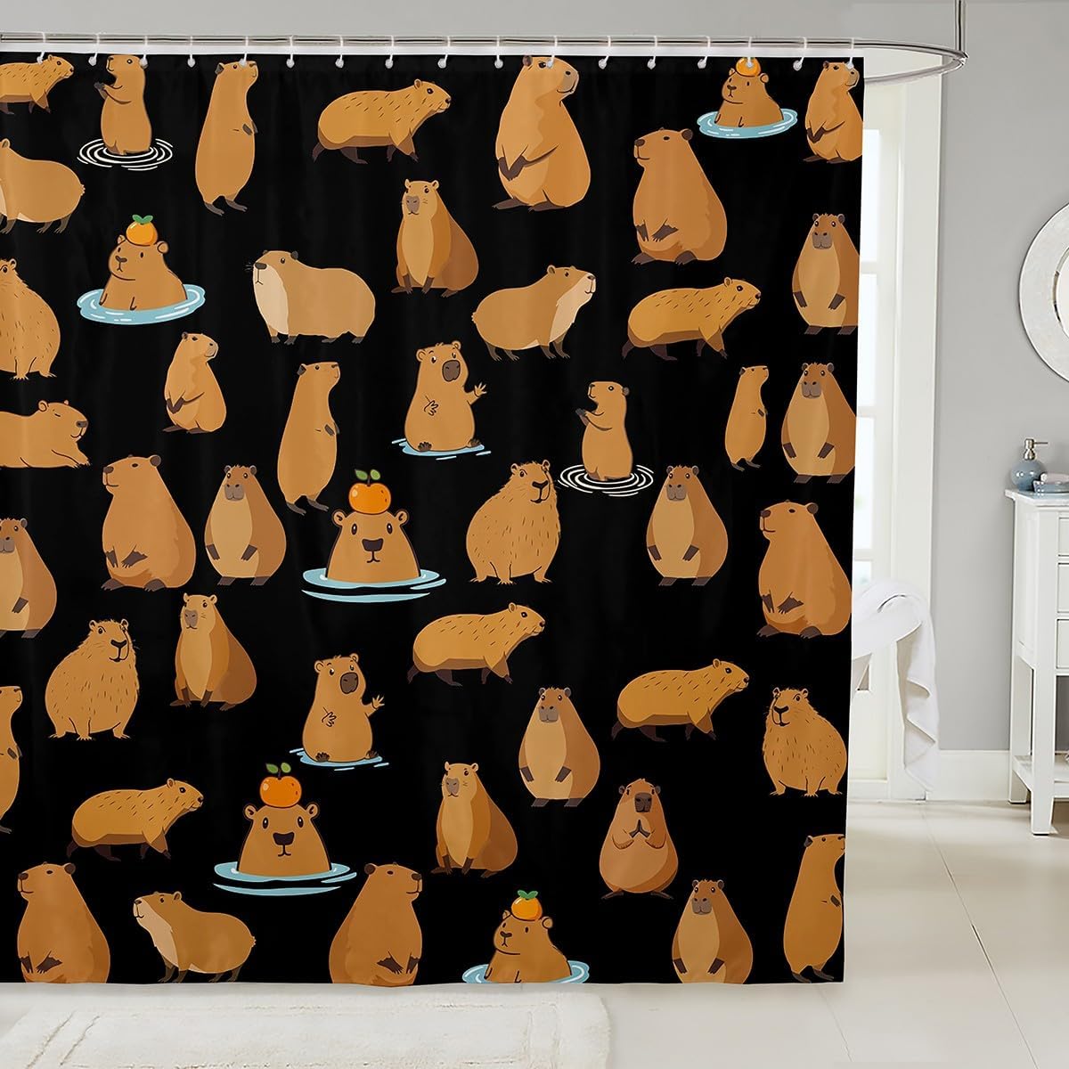 | Fabric Type | 100% Polyester Fabric. Shower Hooks Are Included. |