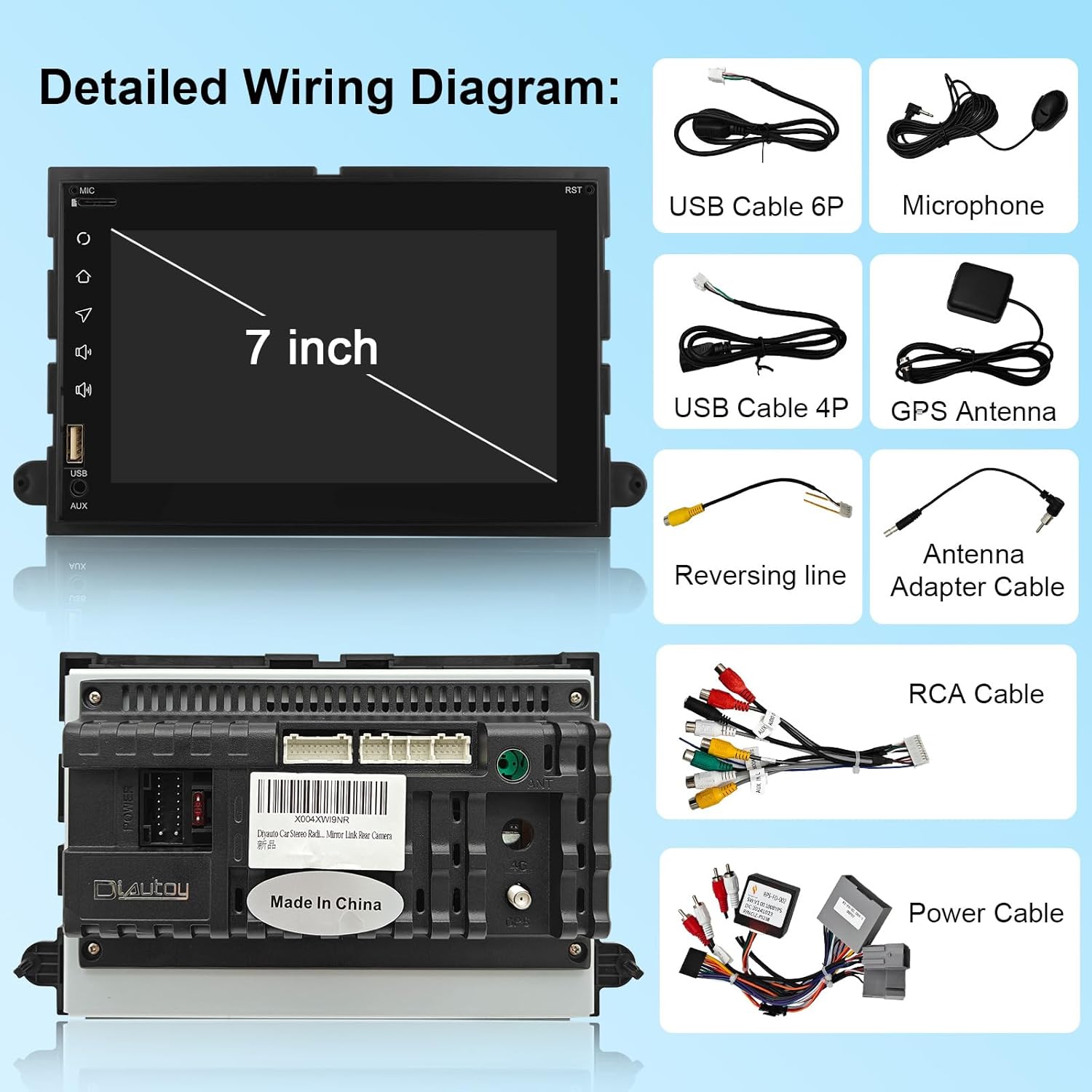 | Additional Features | 7 inch Full Touchscreen, Android 14, Bluetooth;WiFi;GPS Navigation;USB, Wireless Carplay Android Auto |