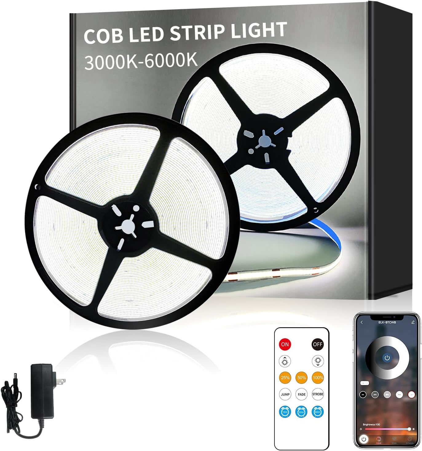 | Item Type Name | COB LED Strip Lights,100FT Warm White LED Lights 3000K,CRI90+ LED Strips with Remote and App,Dimmable 24V COB LED lights for Bedroom |